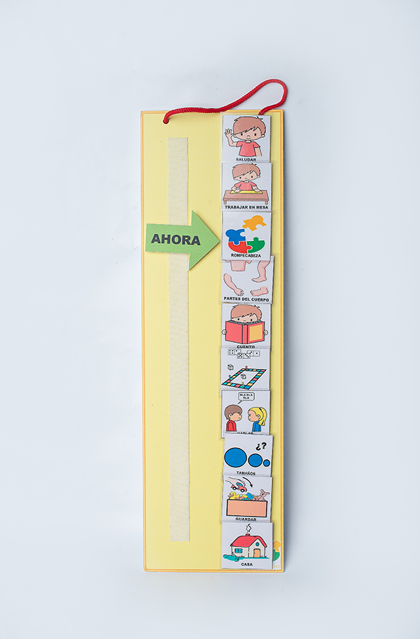 Incluye una placa de pvc con 8 pictogramas a color. 1 flecha en pvc con inscripción AHORA. Este producto esta disponible en diferentes colores de diseño. Listo para usar.