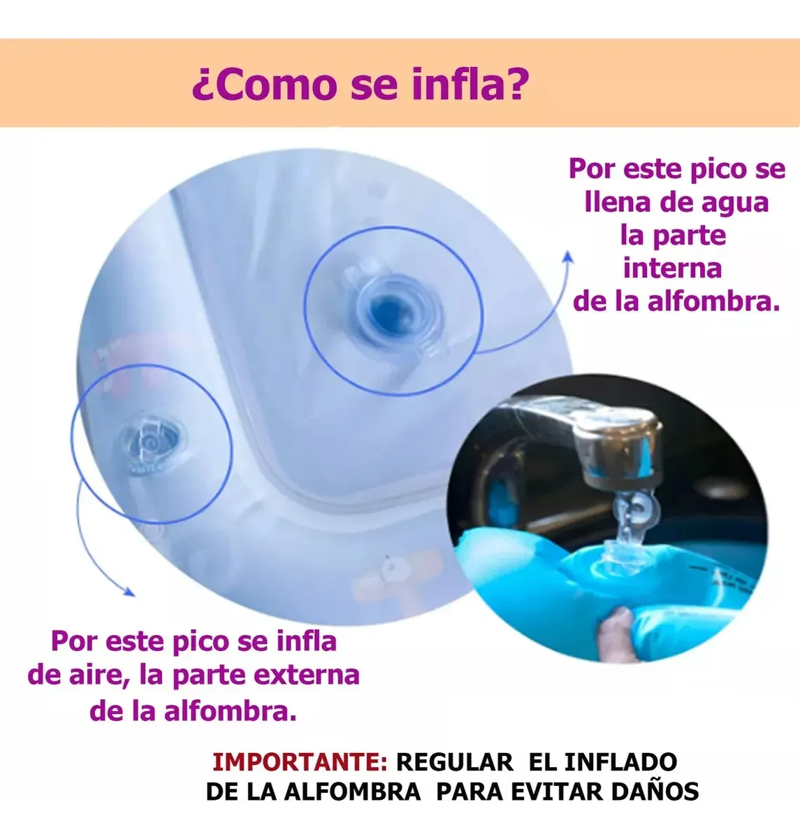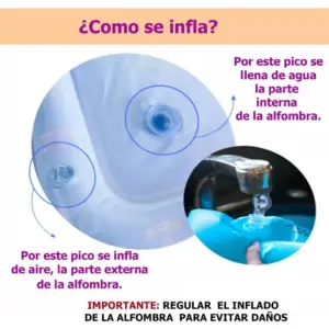La alfombra sensorial es un recurso ideal para promover el desarrollo temprano de manera divertida y segura. su diseño combina un borde inflable con aire y un centro que se carga con agua creando una superficie acolchonada y visualmente atractiva que invita al movimiento y la exploración