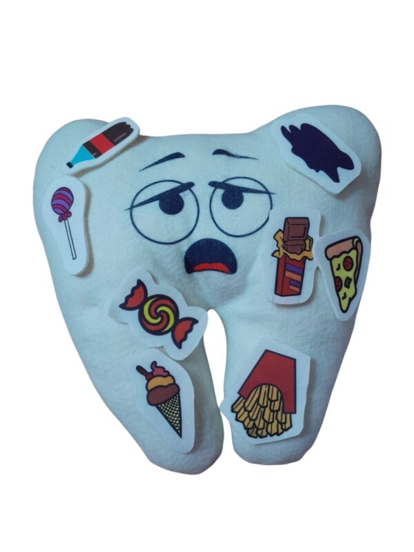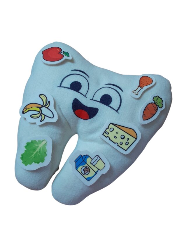 La Muela didáctica es una propuesta para trabajar el cuidado bucal con niños y niñas de manera didáctica y divertida. medidas 24cm por 23cm aprox.